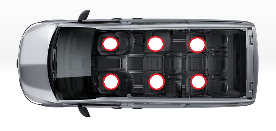 - Three-point safety belts for each seat